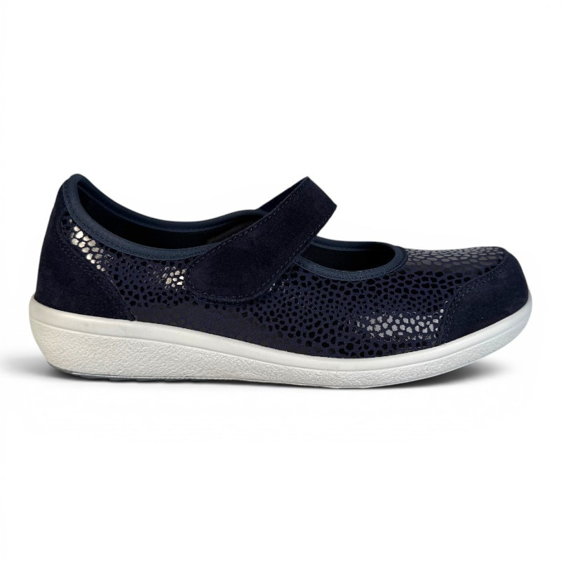 En effet, ces ballerines à velcro, entièrement matelassées, et proposées en croûte de cuir velours avec textile MESH, peuvent ainsi accueillir les pieds déformés de types hallux valgus, hallux ridigus, orteils en marteau, en griffe ou cors, sans risque de compression. Elles s'adaptent parfaitement au changement de volume du pied et dissimule les imperfections.