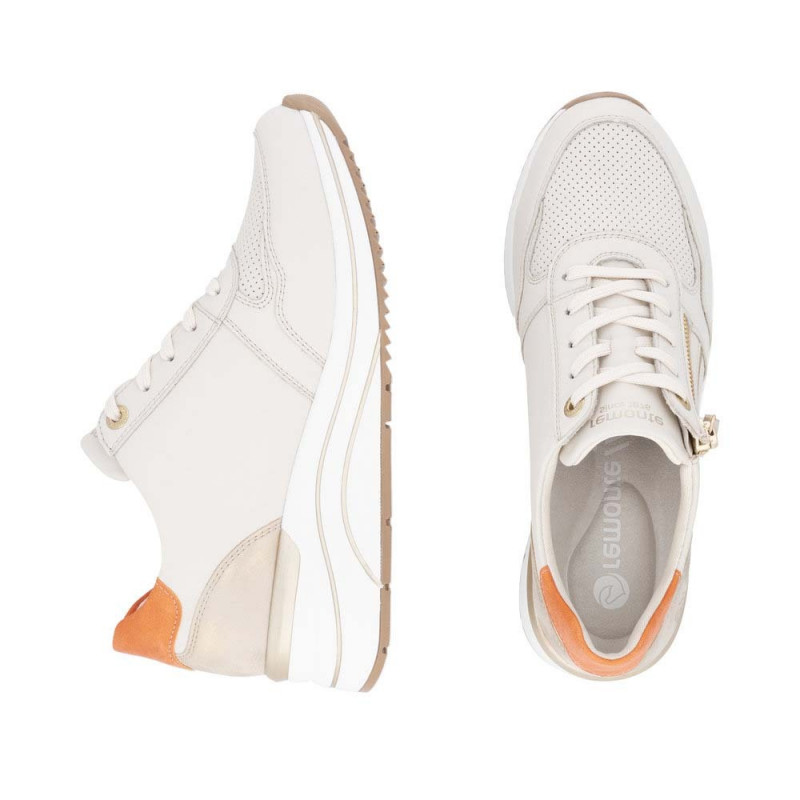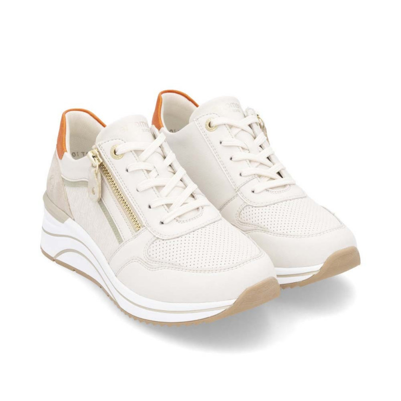 Les baskets à talon compensé D0T10 de la marque REMONTE vous chausseront très confortablement. Proposées en cuir, elles sont également munies d'un système de fermeture très efficace au quotidien, par zip. Bien sûr, il faudra les ajuster à vos pieds par laçage, pour un premier usage.