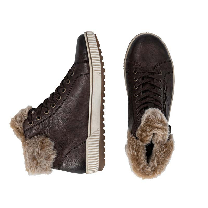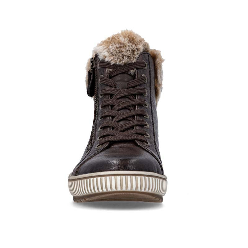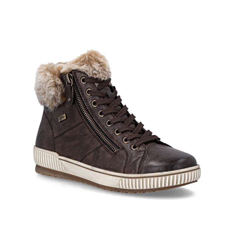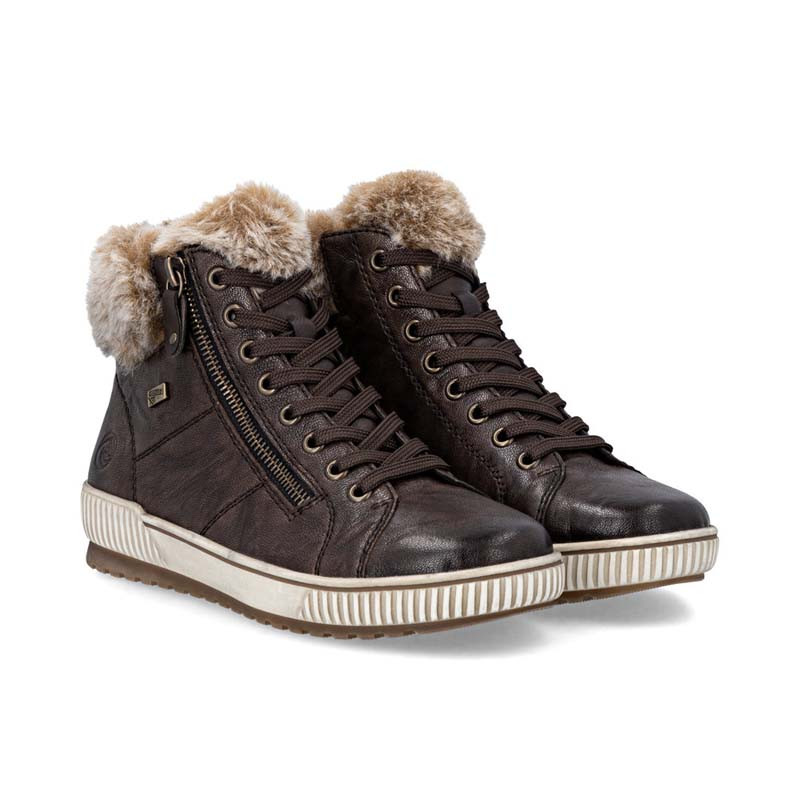 Faciles à porter, confortables, chaudes et fantaisies, vous aimerez porter les baskets hautes pour femme D0780 de la marque REMONTE. En cuir avec un col en fausse fourrure et doublées en textile bien chaud, ces baskets hautes sont idéales pour l'hiver !