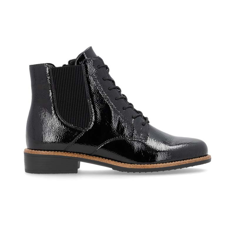 Entre féminité, confort et féminité les bottines D0F79 de la marque REMONTE sont proposées en cuir vernis. Elles vous raviront par leur confection de qualité. Munies de leur zip coté intérieur et, de lacets de réglage et fermeture, elles sont indispensables dans votre garde-robe et se porteront au quotidien !
