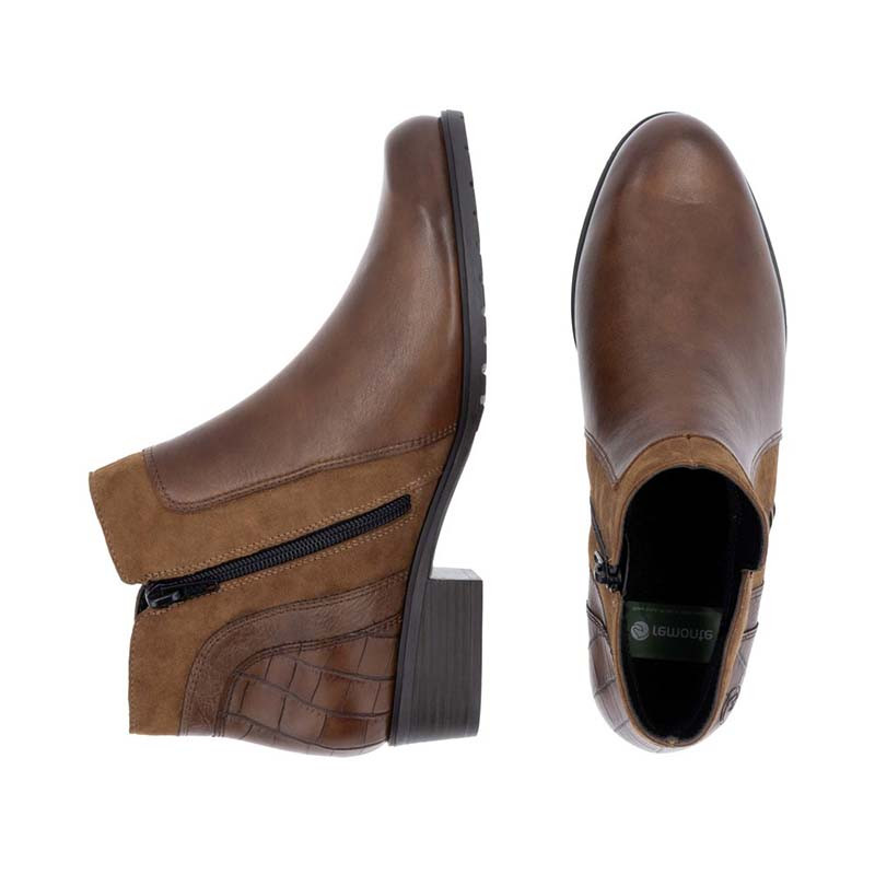 Les boots confort pour femme de la marque REMONTE, très souples et confortables, se portent sans concession au quotidien. Vous apprécierez la qualité des boots en cuir lisse très souple, doublé de textile en fine fourrure, faciles à à enfiler grâce à leur zip coté intérieur. Ils sont montés sur un petit talon très stable de 3,5cm, un détail important pour que vos déplacements se fassent le plus confortablement possible.