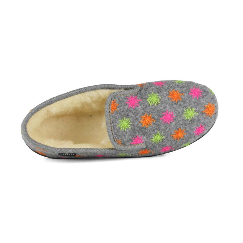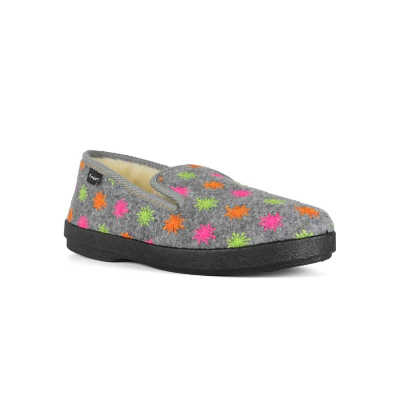 Les charentaises femme GALA de la marque FARGEOT sont fabriquées en France. Pratiques à porter à la maison, elles sont proposées en textile brodé et disposent d'une doublure en laine. Confortables et souples, ces charentaises assurent un confort de marche pour de bons moment à la maison, et sont dotées d'une semelle extérieure très souple et antidérapante.