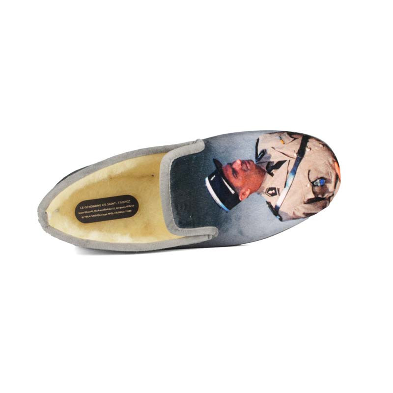 Idéales à offrir à Noël, les charentaises humoristiques pour homme de La Maison de l'Espadrille sont imprimées dans le thème de "Les Gendarmes à St Tropez" ! Entièrement doublées de laine de mouton, ces charentaises pour homme sont très confortables et maintiennent vos pieds bien au chaud tout en les laissant respirer : pas de problème de sudation ! Vous ne pourrez que tomber sous le charme de ces charentaises humoristiques pour homme, un modèle à la fois plein d'humour et très qualitatif.