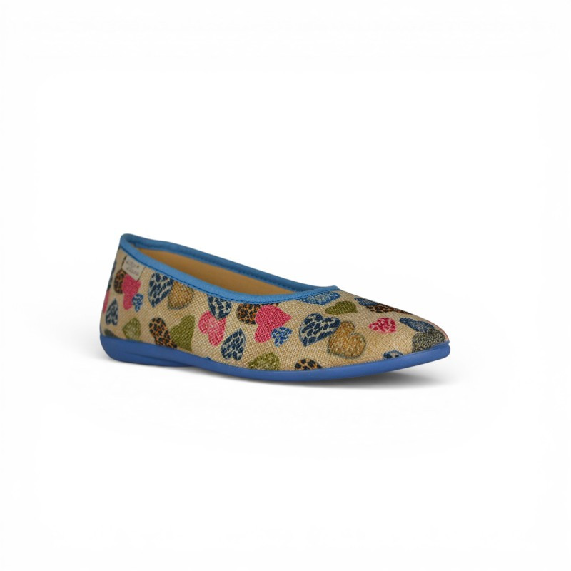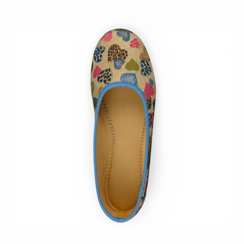 Apportez une touche féminine à vos tenues avec ces ballerines 2053 de La Maison de l'Espadrille. Confectionnées dans un textile imprimé de coeurs, elles offrent un style à la fois chic et original. Leur silhouette classique et épurée épouse parfaitement la forme du pied pour un confort optimal au quotidien.