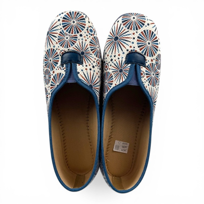 Les chaussons imprimés pour femme de la marque LA MAISON DE L'ESPADRILLE sont confortables et faciles à enfiler. Grâce à l'élastique d’aisance sur le dessus, l'insertion et le maintien des pieds est parfait. Ces chaussons femme sont très confortables et d'une grande souplesse. Vous apprécierez aussi leur semelle antidérapante avec talon compensé très agréable.
