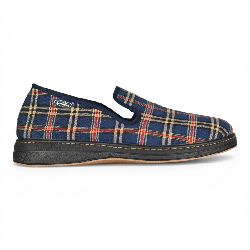 Confortable et facile à porter à la maison comme au jardin, cette version estivale de la charentaise est confectionnée en textile écossais et dispose d'une semelle antidérapante.