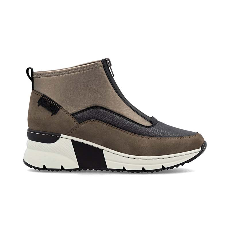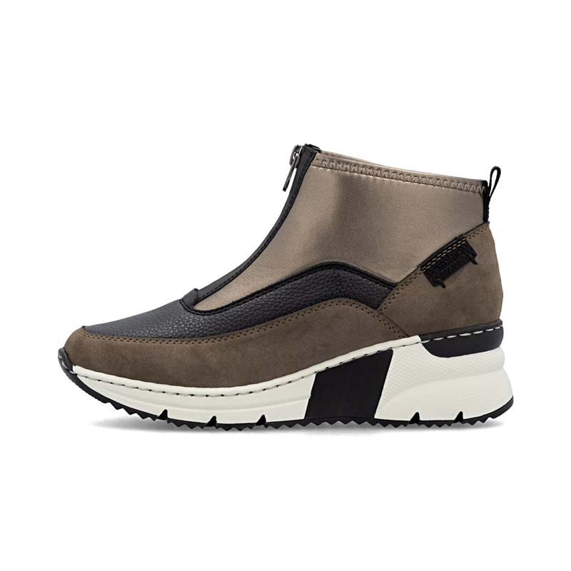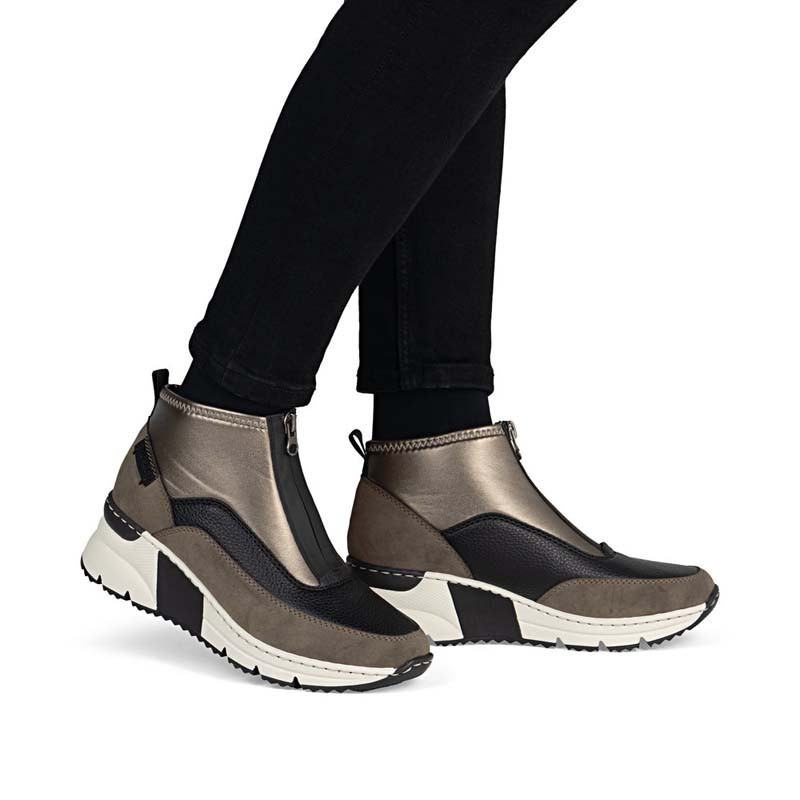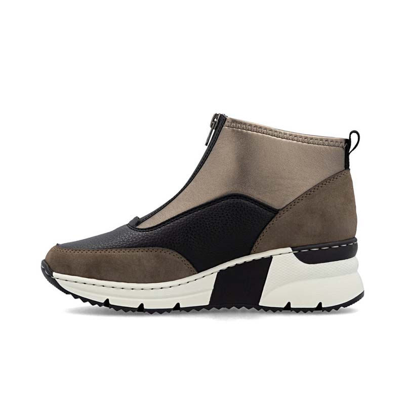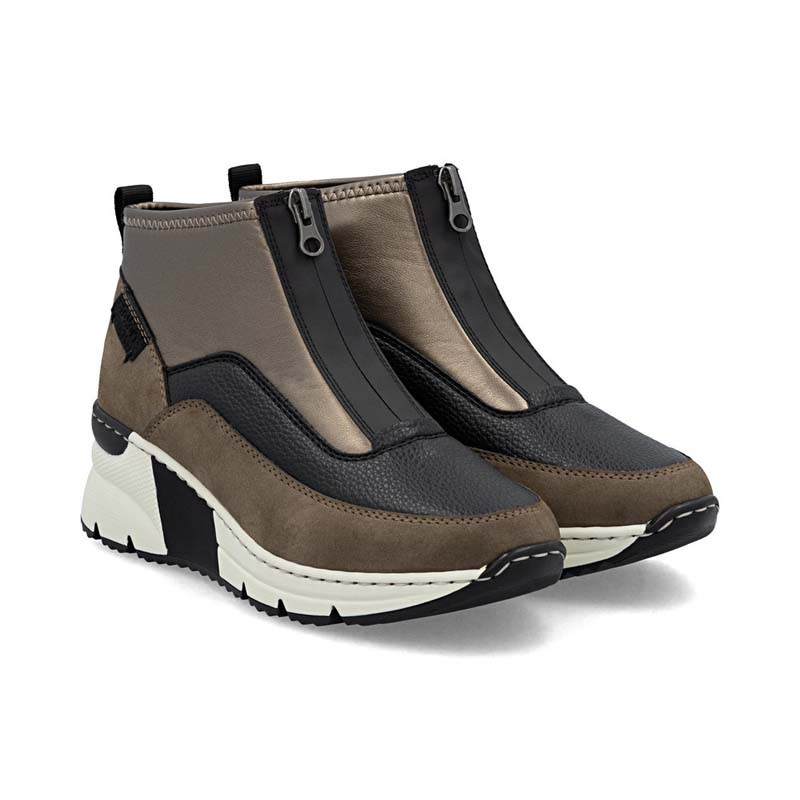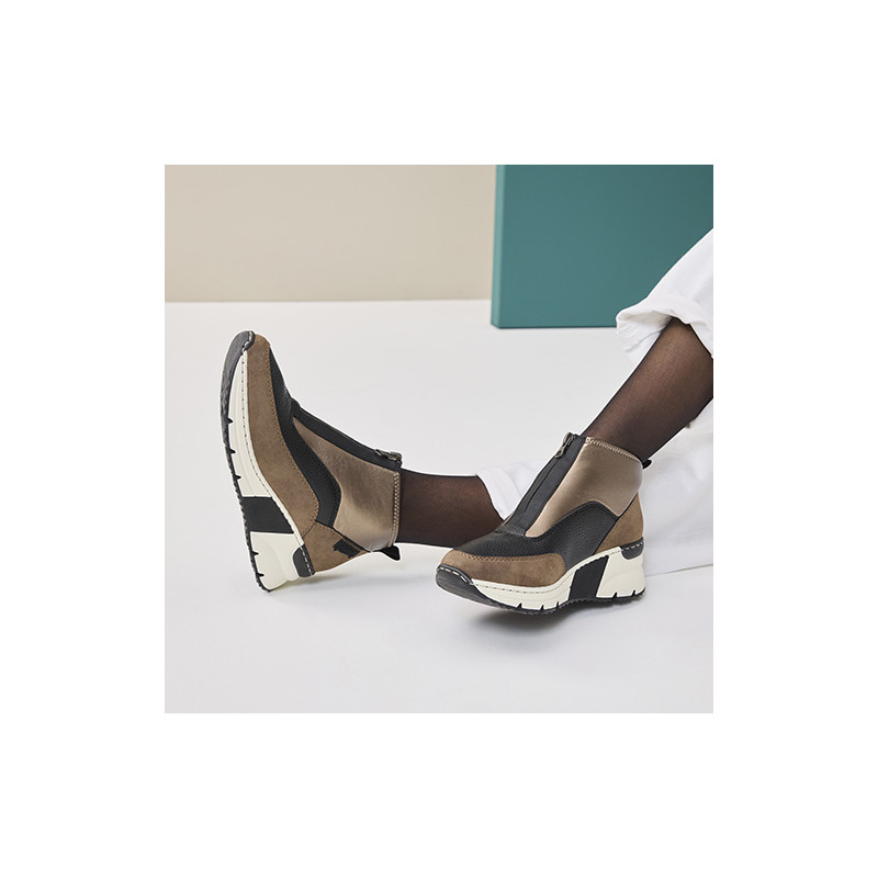 Les baskets montantes femme WILDEBUK N6352 de la marque RIEKER sont confortables et faciles à chausser. Elles sont montées sur un talon compensé très stable et disposent d'un système de fermeture rapide, par un simple zip central.