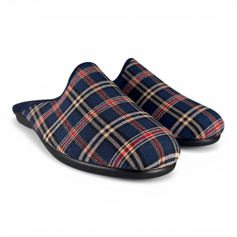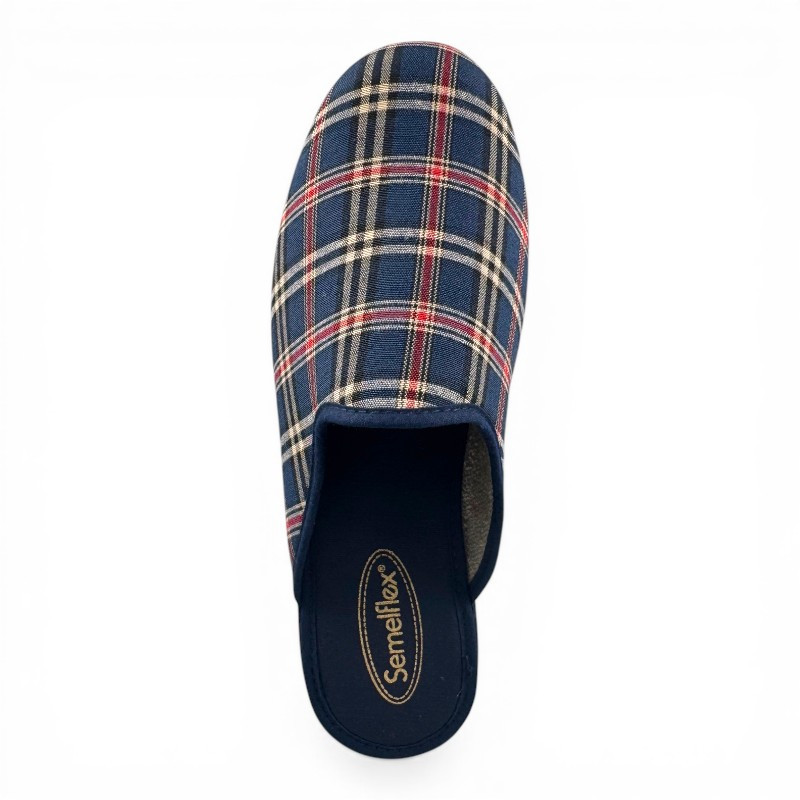 Le modèle MIKE, des mules d'intérieur pour homme de la marque SEMELFLEX, est léger et confortable. Elles sont proposées en textile imprimé à carreaux, ce qui apporte une touche chaleureuse et traditionnelle. Facile à enfiler, elle est idéale pour un usage quotidien à la maison.
