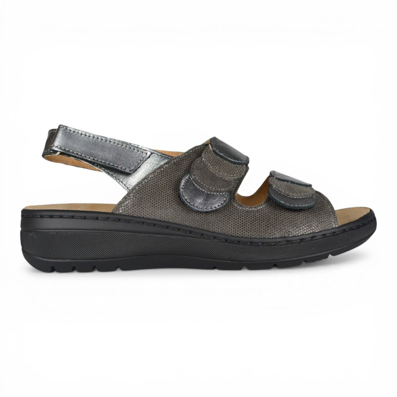 Vous apprécierez les sandales Velcro GISÈLE de la marque SEMELFLEX, un modèle adapté aux personnes qui recherchent du bien-être pour leurs pieds ! Très confortables et faciles à chausser, elles sont munies de brides Velcro à l'avant et à l'arrière pour un parfait ajustement et maintien à chaque pied.