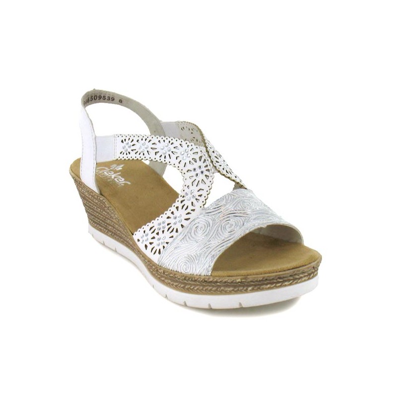 Les sandales à talon compensé de la marque RIEKER sont très agréables et confortables à porter au quotidien. Grâce à leurs élastiques d'aisance sur les cotés et sur le cou-de-pied, ces sandales pour femme se chaussent très facilement tout en maintenant parfaitement vos pieds pendant la marche. Vous aimerez leur style très féminité accentué par les ornements en petits strass. Elles reposent sur un talon compensé très agréable et très stable.